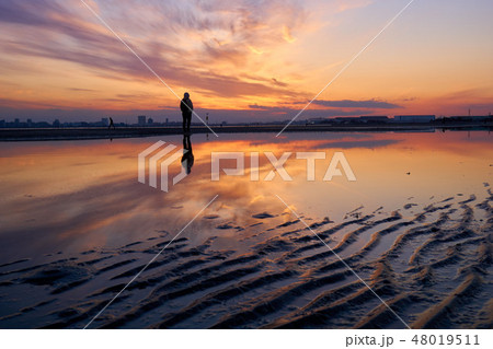 千葉県 干潟の夕焼け ふなばし三番瀬海浜公園