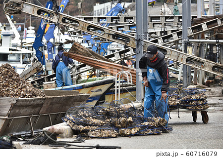 室津漁港 牡蠣の水揚げ風景