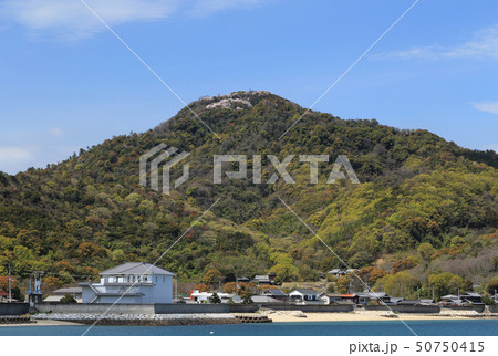 桜咲く浦島伝説の「紫雲出山」を詫間湾の船越港から見る