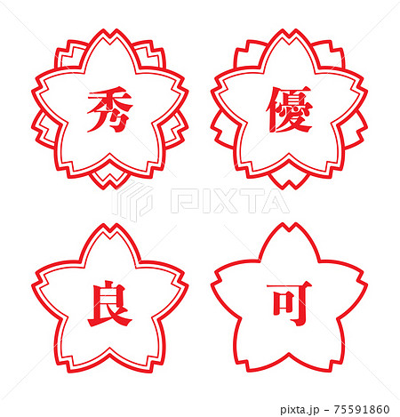 秀 優 良 可(桜の花の形をした評価スタンプセット)