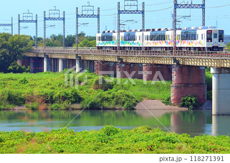 晩夏の風景が残る渡良瀬川を渡るスカイツリートレイン。