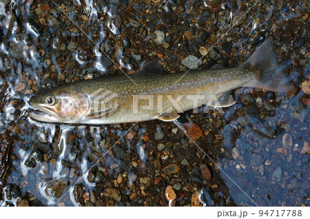 渡良瀬川支流、餅が瀬川のヤマメを置き撮りした
