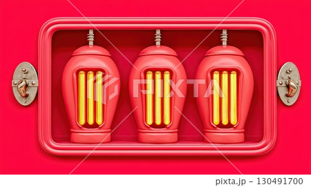 A colorful, neon-lit merry-go-round with a red, white, and blue design