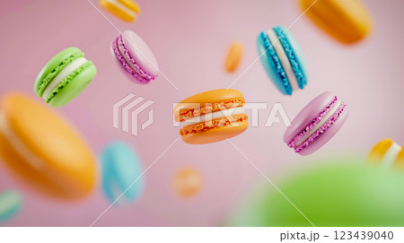 Multi-colored macarons close up on wood background with soft lights. Delicate French dessert for breakfast in the morning light