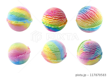 Rainbow Ice Cream Ball Collection Bundle Set Isolated on a Transparent Background