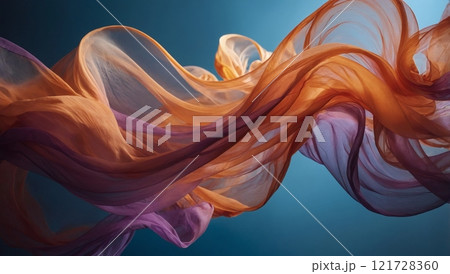Colorful silk ribbons creating a dynamic flow against a blue background