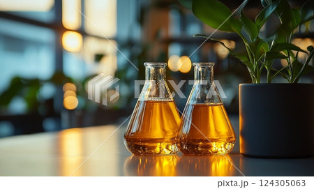 Chemical Flask Display Laboratory Setting Photography Minimalist Environment Soft Lighting Concept