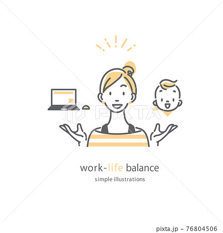 ワークライフバランス 女性 シンプルでお洒落な線画イラスト素材