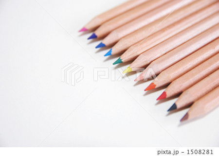 カラフルな色鉛筆 コピースペースのある白背景の写真素材