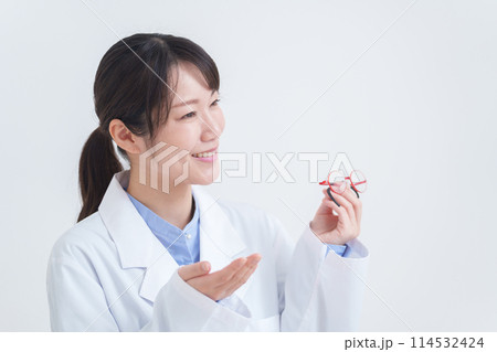 子供の弱視用眼鏡を持つ眼科医