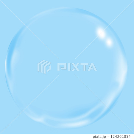 バブル球体 透明 液体イラスト素材背景 ブルー青色 シンプルシャボン玉 円形丸 水泡