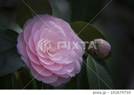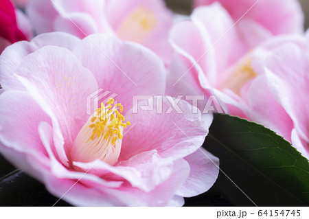 ピンク色のツバキの花 花 椿