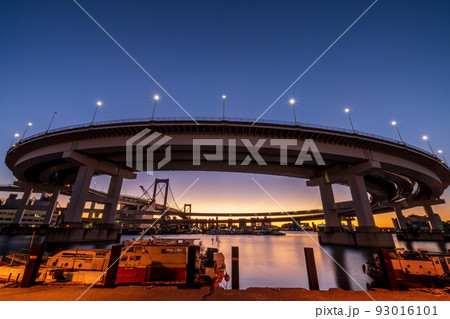 「東京都」レインボーブリッジのループ橋と朝焼け