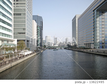運河沿いの街並み 芝浦運河とビル群 東京都港区