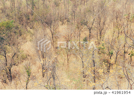 Degraded forest dry arid trees and grass.