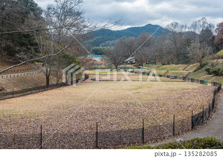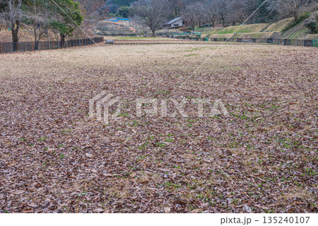 冬の明日香村風景 石舞台古墳芝生広場 奈良県