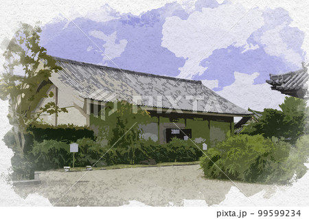 水彩画風 元興寺 法輪館 奈良県奈良市