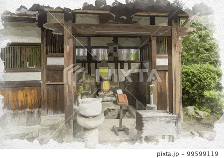 水彩画風 元興寺 北門 奈良県奈良市