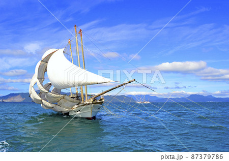 青い空を背景に観光スポット 御立岬公園から観える絶景風景 (熊本県芦北郡芦北町・田浦町)