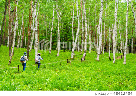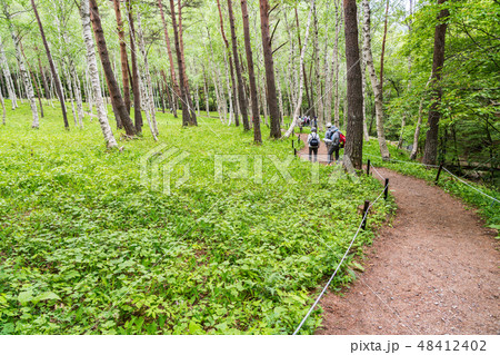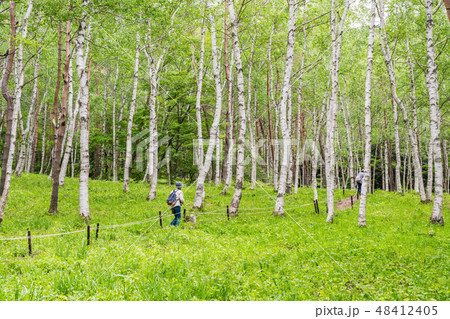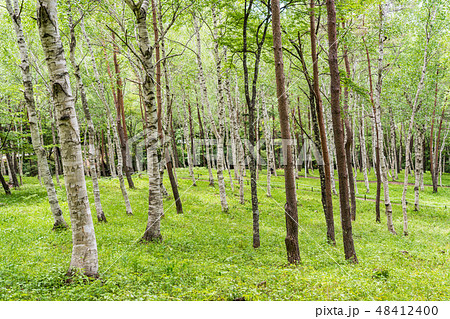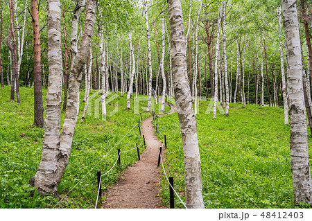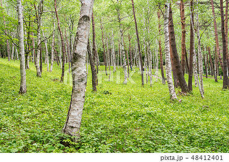 芦川すずらんの里の白樺林に咲くすずらんの花