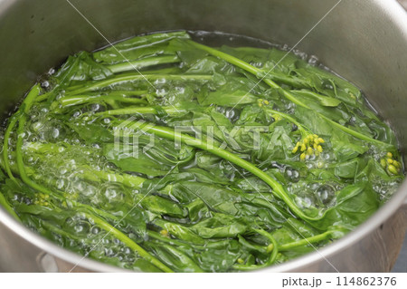 つみ菜 芯摘菜 摘み菜 茹で上げ水にとる