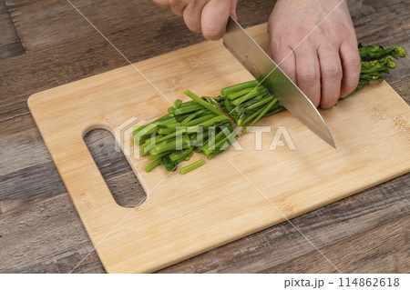 つみ菜 芯摘菜 摘み菜 包丁で切る