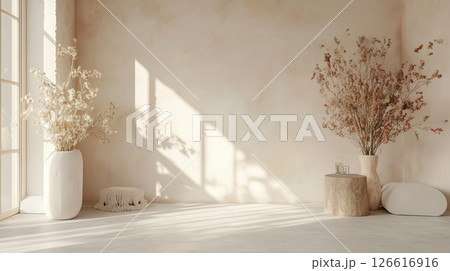 ベージュ色の花の背景素材(Generative AI)