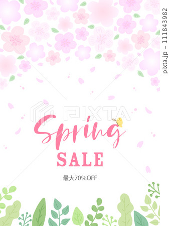 春をイメージした華やかなさくらとグリーンの背景、かわいい手描きイラスト