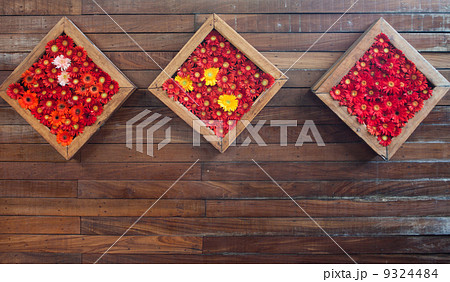 Chrysanthemum flowers in the wooden frame