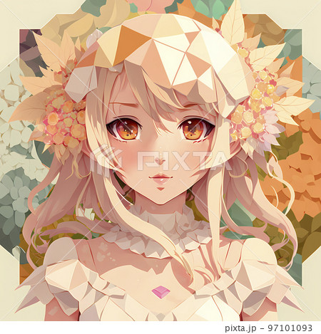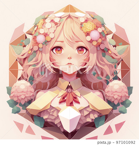 アニメ風少女 ポリゴンパターンの花の姫「AI生成画像」