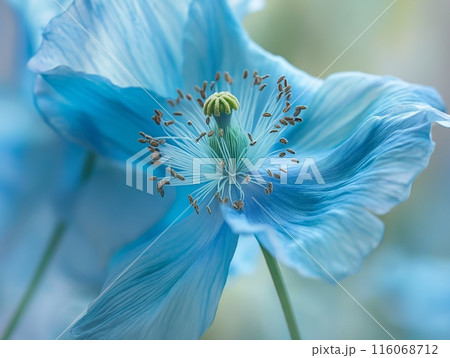 A detailed close-up of a vibrant blue flower with delicate petals and prominent stamens, showcasing its intricate beauty.