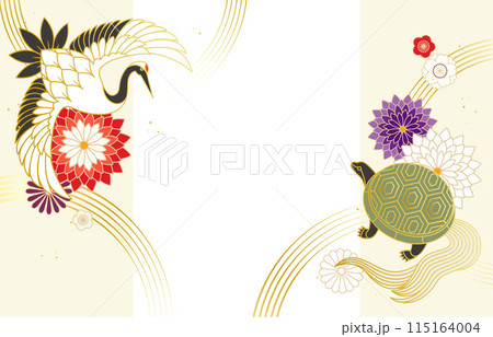 鶴と亀と和花の背景イラスト素材 ベクター 敬老の日 長寿 縁起物