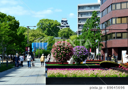 熊本城周辺の都市景観 花とみどりに彩られた桜町・花畑エリアの町並み