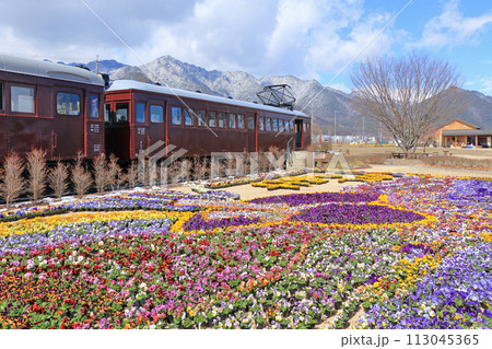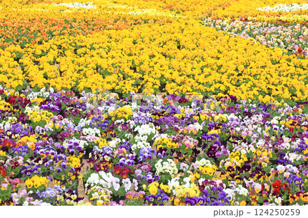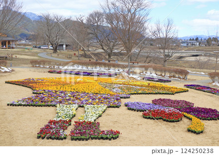 早春の安曇野ちひろ公園 パンジーの花