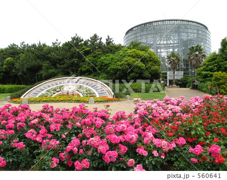稲毛海浜公園・三陽メディアフラワーミュージアム(千葉市花の美術館)の花時計と温室(5月)千葉県千葉