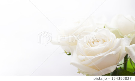 bouquet of white roses on a white background in the corner of the photo
