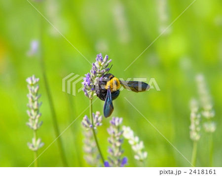 ラベンダーの蜜を吸う蜂 ラベンダー畑