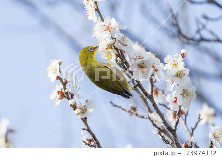 梅の花の蜜を吸うメジロ 大阪城梅林にて