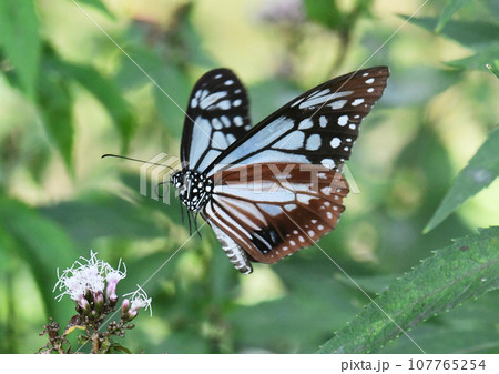 拍攝淡紋青斑蝶在青葙花上採集花蜜的特寫照片