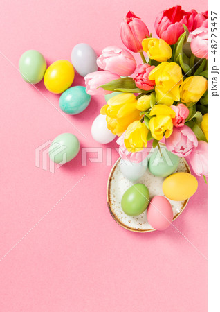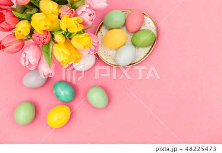 Tulip flowers Easter eggs Spring blossoms Vintage