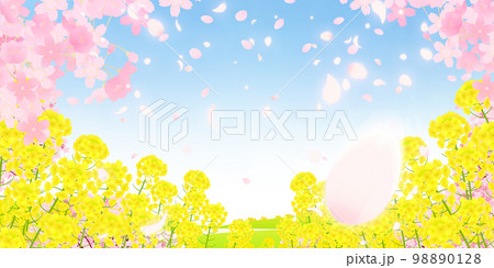 菜の花畑と桜並木 スプリングフェア 背景素材
