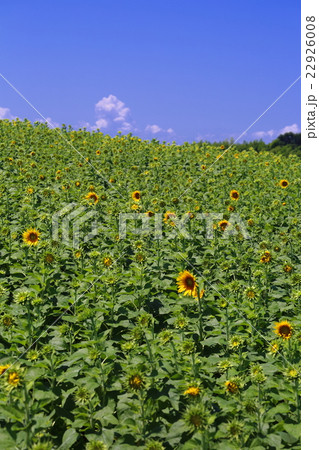 青空バックの一面が満開の「ひまわり畑」風景 3 知多町観光農園