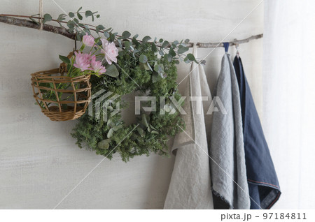 グリーンリースとリネンクロス