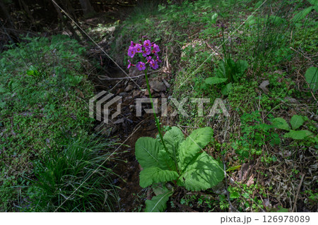 ひっそりと自生する兵庫県丹波市市島町に咲く九輪草