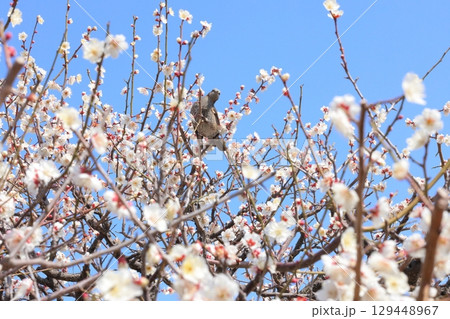 咲き誇る梅の花と鳥