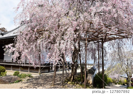 京都市 善峯寺の薬師堂の満開枝垂桜