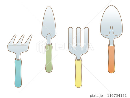 パステルカラーの園芸用品セット:シャベル・フォーク(主線なし)