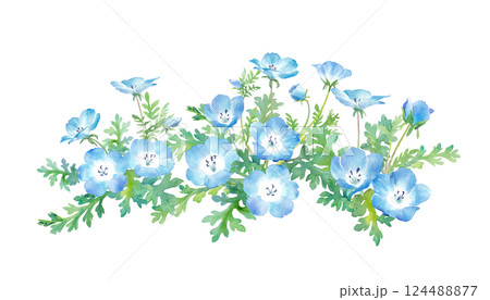 春の花:ネモフィラの水彩イラスト。一株のクリップアート(ベクター)