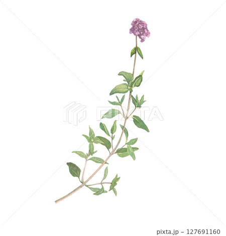 Watercolor illustration of thyme. Hand-drawn isolated clip-art on white background. Delicate realistic Medicinal images of herbs for packaging, textiles, printing, holiday cards, wedding, menu