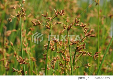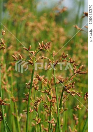 自然 植物 シュロガヤツリ、マダガスカル原産。草丈は一メートルほど、花茎の先に苞葉が傘状に広がります